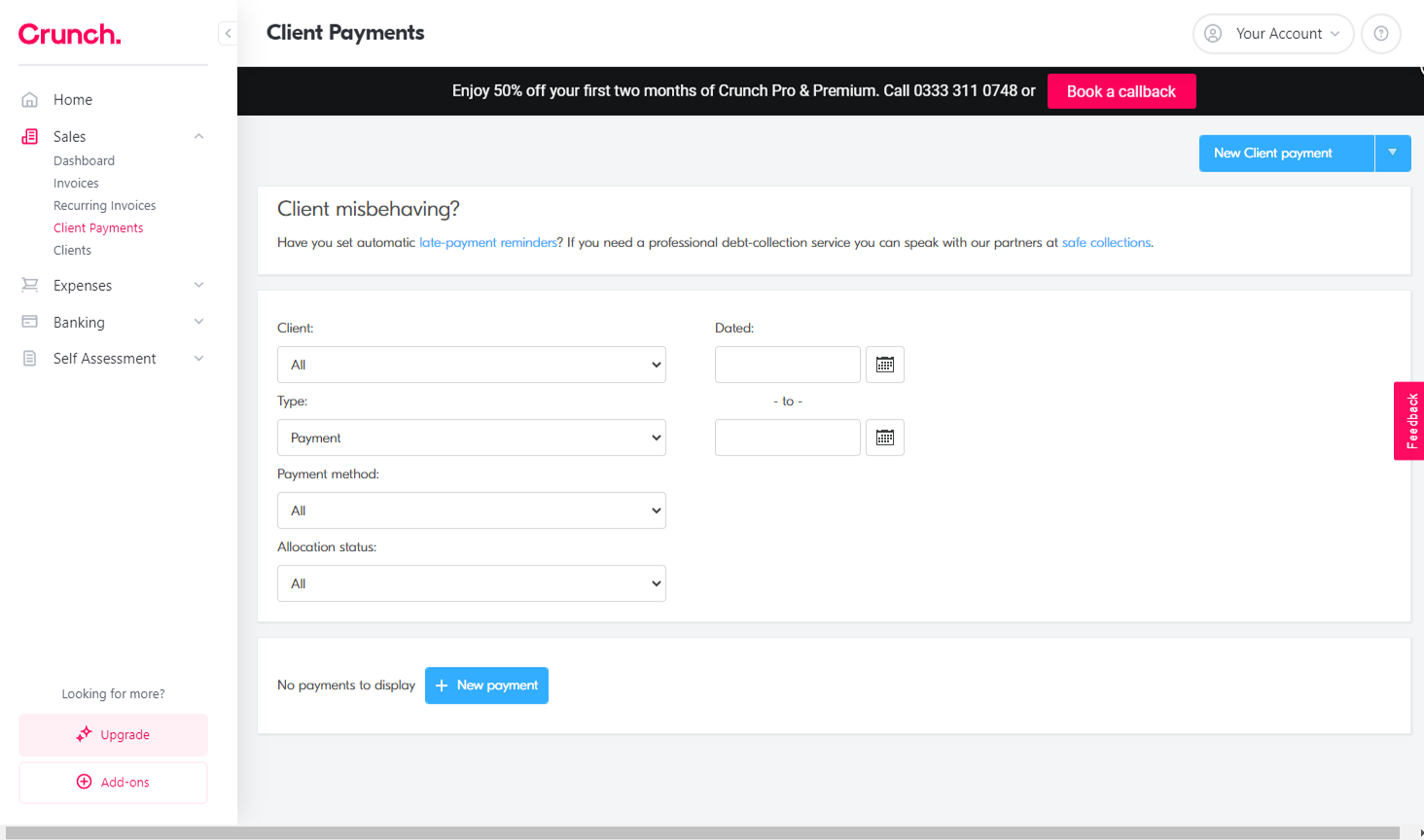 With Crunch, once you start paying to access the full software, you’re not really in software territory anymore, instead moving into online accounting services. This makes it significantly more expensive than simply paying for software with a feature-rich provider. As an example, Crunch’s packages start at £27 per month for sole traders and £90 for limited companies, whereas FreeAgent (£19 per month for sole traders) and Pandle (£5 + VAT per month) are more accessibly priced, with far more features and tools.